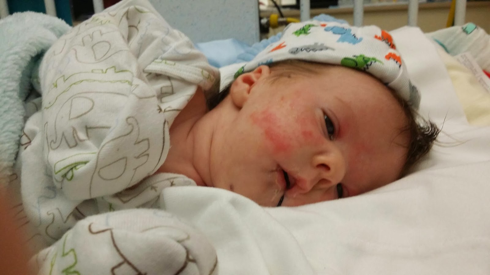 Come Friday, I get to the hospital and then all of a sudden, with Nicole holding him, his heart rate shot up, he turned bright red and started moving his left arm back and forth. Nicole said that it looked like a seizure. I wasn't convinced. Now, to be fair to Nicole, I didn't watch him the whole time, so I am not really sure exactly what happened at the beginning.